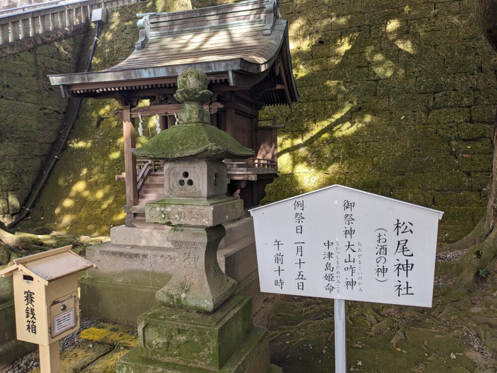 2. 松尾神社(まつおじんじゃ)酒造・醸造の神様。お酒関係のお仕事や、飲食店の繁盛にご利益があります。