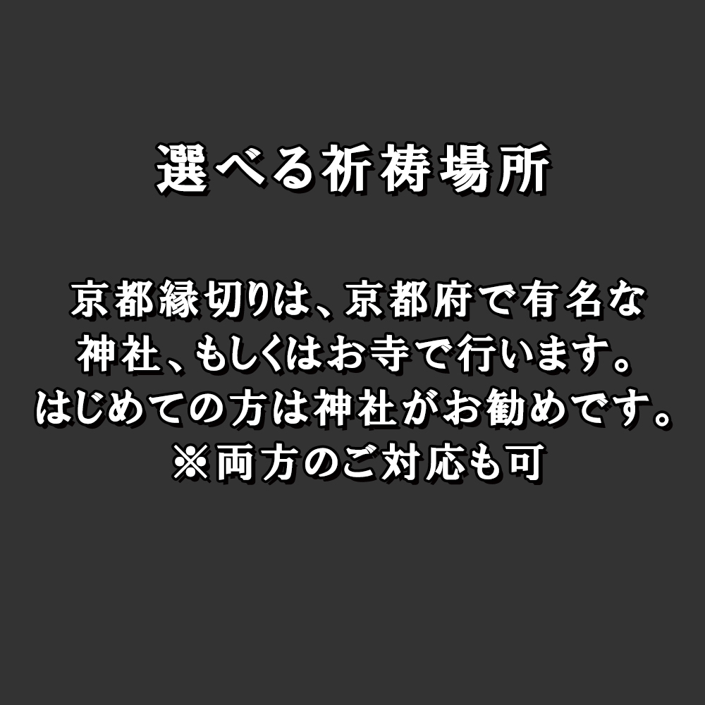 今回の縁切り祈祷は、縁切り神社。もしくは縁切り寺の二か所からお選びいただけます。初めての方は縁切り神社がお勧めです。