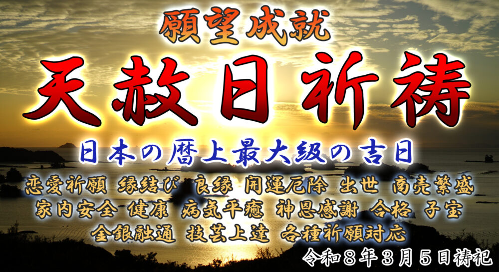 令和8年3月5日は、日本暦史上最大級の吉日でもある天赦日(てんしゃにち)を迎えます。